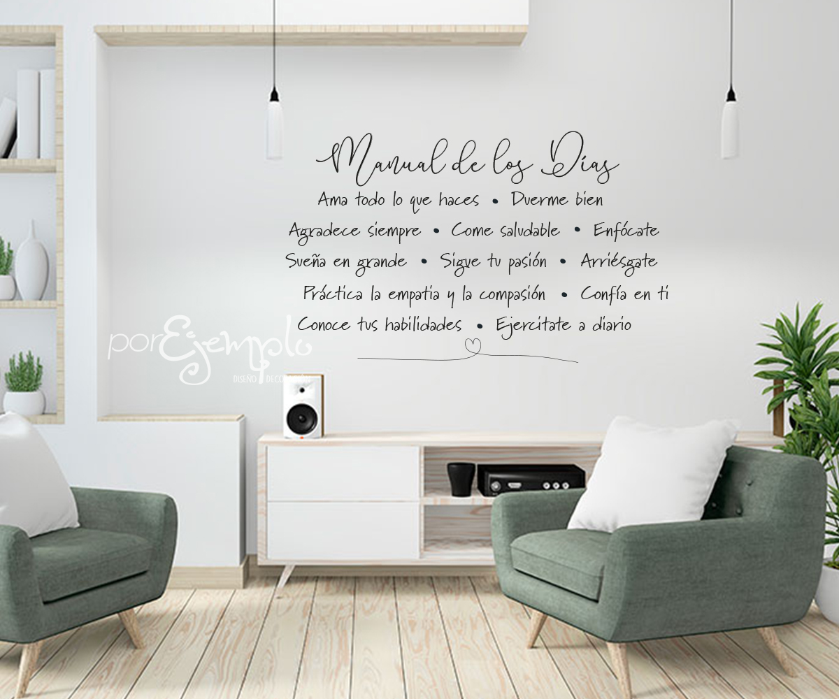 - En Por Ejemplo creemos que la decoración debe ser sencilla, divertida y significativa. Por eso, diseñamos vinilos que se adaptan a tu estilo y que convierten cualquier rincón en un lugar único.